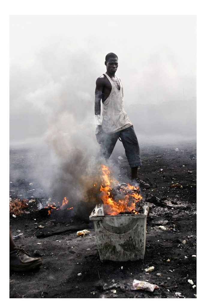 O fotógrafo Nyaba Léon Ouedraogo, de Burkina Faso, retratou o universo dos jovens e crianças que recuperam os metais dos objetos eletrônicos descartados no vazadouro de Agbogbloshie Market. Eles passam o dia desmontando monitores e peças de computadores velhos para queimar componentes de plástico ou borracha e recuperar o cobre. O metal precioso é revendido para a Índia ou a Nigéria, que depois de processados, viram bijuterias a serem distribuídas novamente no mercado europeu.